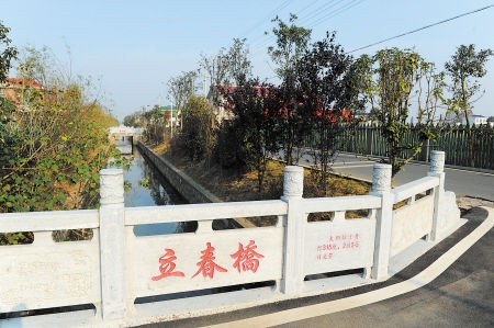 雖然事先在車上已經知道了渠面架有24座橋,但好奇心重的讀者陸瑩瑩還是沿著渠邊一邊走一邊認真地數,發現橋上刻有節氣歌,她還情不自禁為大家讀了起來。“立春橋,立春時在六九頭,嫩刺荷苞現綠雛。春來水有三分熱,龍燈獅子舞千秋。”這24座由居民群眾自行組織建設的橋,以我國傳統的二十四節氣為主題,一次命名為“立春橋”、“雨水橋”、“驚蟄橋”等。每座橋均配有相應的節氣簡介、農事歌、農耕圖和節氣花。